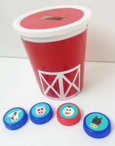 My little girl is working on fine motor skills and her therapist suggested this game. (Well, an undecorated version, but you know me, I have to ‘craft’ on everything.) I put vinyl on a yogurt tub and some milk lids. I used an Xact-O knife to cut out a hole and, to play, my little girl just has to put the lids into the hole! I had already covered the carton with contact paper before the vinyl which made it a little bubbly but I don’t think my little one will mind. If you want to make your own. Here is the SVG file.