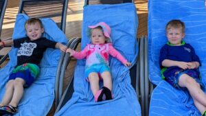 I thought about a lot of different possible activities for our cruise themed birthday party, but there was one thing that was nonnegotiable: a balloon drop. On our cruise, there was a balloon drop the first night at midnight. The kids wanted so badly to go! We let them try staying up (not sure what we were thinking) and then nearly made it. Well, they were finally getting so tired and I told them I would wake them up in time to see it. Guys, I really tried to wake them up. They were like floppy fish. I was poking them, talking to them, sitting them up. Nothing worked and they missed the balloon drop. They were devastated the next day and I promised then and there that I would do a balloon drop at our house when we were home.
