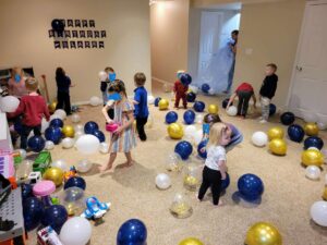 So, after our balloon drop craziness, I didn’t plan any other activities. I was working with preschool age kids after all, but you could easily plan any sort of party game!