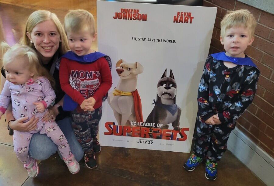 On Saturday, the whole family got to go to an early pre-showing of the new movie DC League of Super Pets! (Even better, the theater was also throwing a pajama party so I didn’t even have to get them dressed first!) My boys had seen commercials for the show and were pretty excited. It did not disappoint! Within the first ten seconds my three-year-old was laughing. My four-year-old stared at the screen the entire time, he could not pull his eyes away! And… I kinda hate to admit this… I did shed a tear during it. It’s a must see!